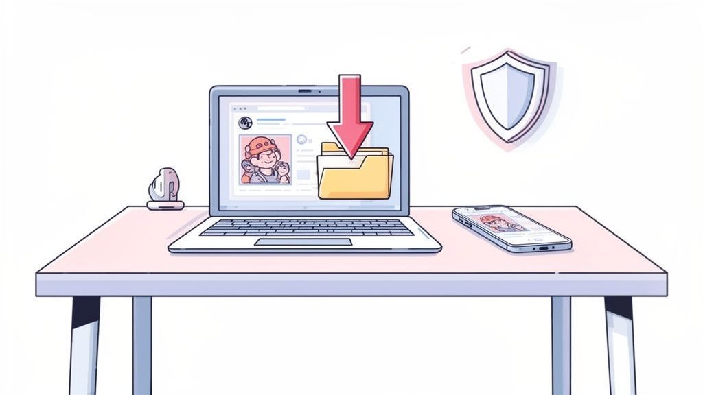 In the end, whether using an Instagram image downloader is okay comes down to your intent. Saving your own posts as a backup? Totally fine. Grabbing a competitor's visuals for some private market research? Smart move. But taking someone else's creative work and passing it off as your own is where you cross a serious line. And remember, these same ideas apply to other formats, too. You can learn more in our guide on how to view Instagram stories anonymously while still keeping ethics in mind.